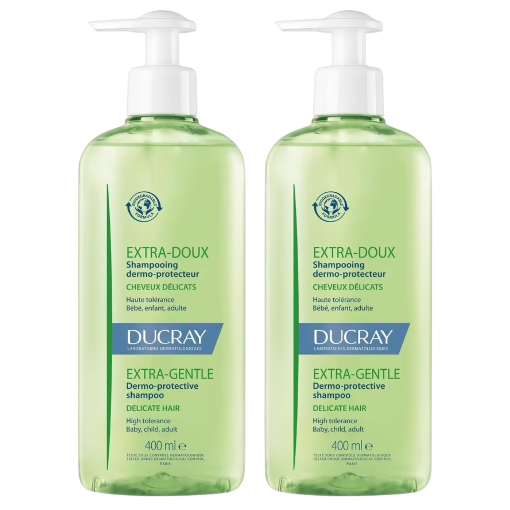Zestaw 2x Ducray Extra-Gentle Shampoo 400 ml to delikatny, ochronny szampon stworzony z myślą o wrażliwej skórze głowy i codziennej pielęgnacji włosów całej rodziny.