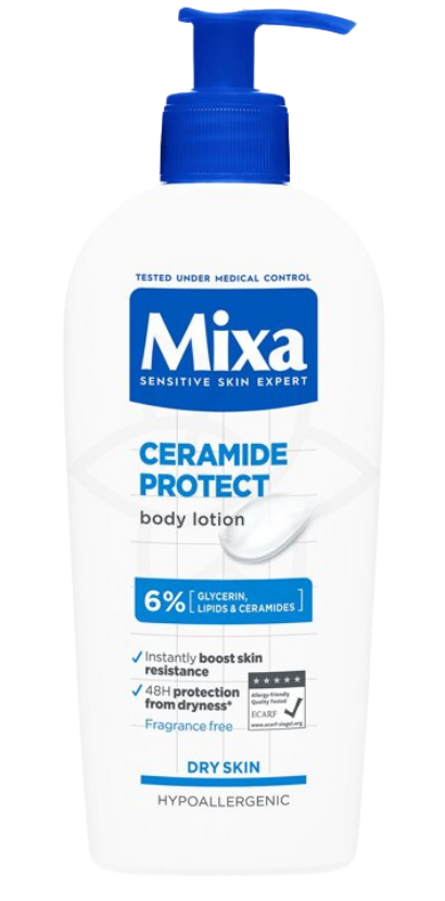 Balsam do ciała Mixa Ceramide Protect to skuteczna pielęgnacja dla suchej skóry, która dzięki innowacyjnej formule zapewnia 24-godzinną ochronę przed przesuszeniem. Produkt zawiera 6% ceramidów i lipidów, które naturalnie występują w naskórku, a także glicerynę, znaną ze swoich nawilżających i ochronnych właściwości. Balsam wspiera naturalną barierę ochronną skóry, intensywnie ją nawilżając i regenerując. Dzięki bezzapachowej, nietłustej formule, balsam szybko się wchłania, nie pozostawiając uczucia lepkości, zapewniając komfort przez cały dzień.