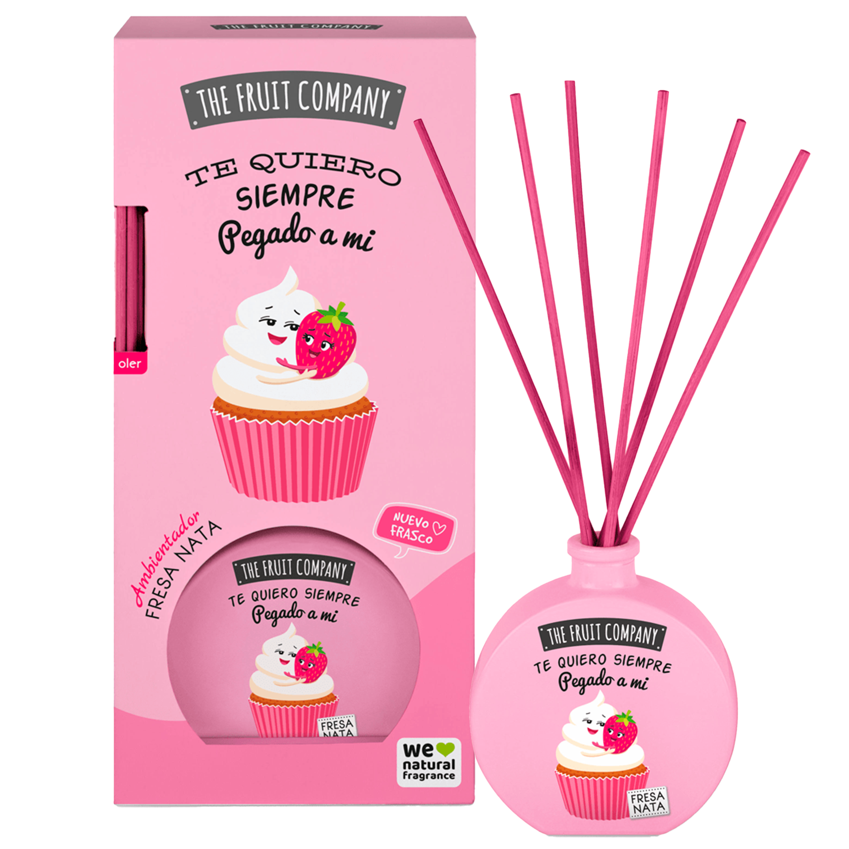 The Fruit Company Strawberry Cream to odświeżacz powietrza w formie dyfuzora z patyczkami, który stopniowo uwalnia kuszący, deserowy zapach truskawki ze śmietaną.