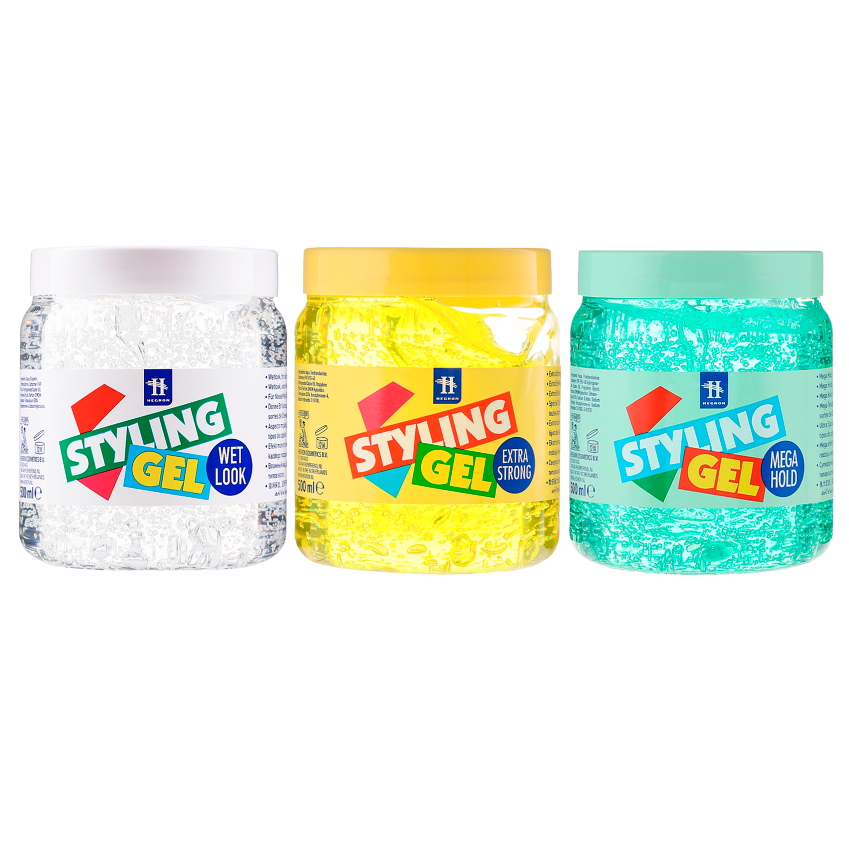 Wet Look nadaje włosom efekt mokrego połysku i podkreśla ich strukturę, Mega Hold gwarantuje bardzo mocne utrwalenie fryzury, a Extra Strong (żółty) zapewnia trwałość i elastyczność przy bardziej dynamicznych stylizacjach.