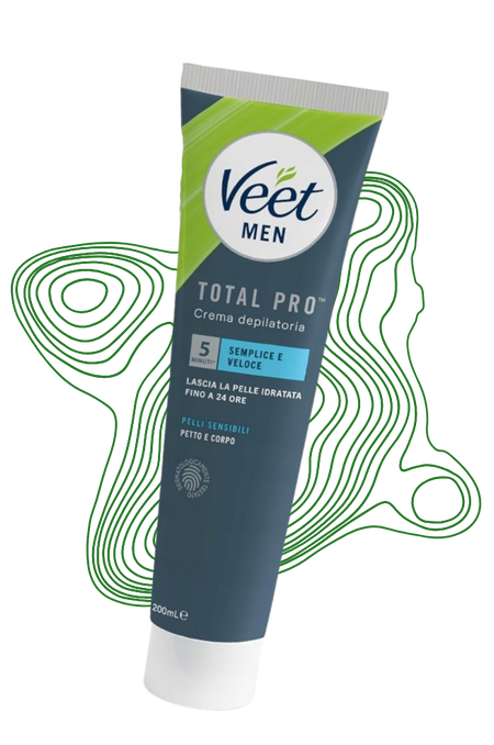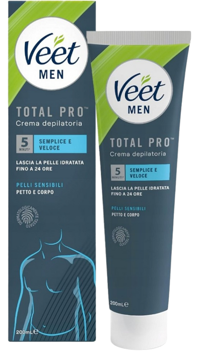 Veet Men Total Pro Sensibles to krem do depilacji, stworzony z myślą o mężczyznach, którzy chcą skutecznie i bezpiecznie pozbyć się niechcianego owłosienia, jednocześnie dbając o swoją wrażliwą skórę. Produkt usuwa nawet najkrótsze włoski bez konieczności użycia maszynki, zapewniając gładką i nawilżoną skórę aż do 24 godzin. Dzięki nowoczesnej formule Silk & Fresh, krem pozostawia przyjemny zapach i daje uczucie świeżości.