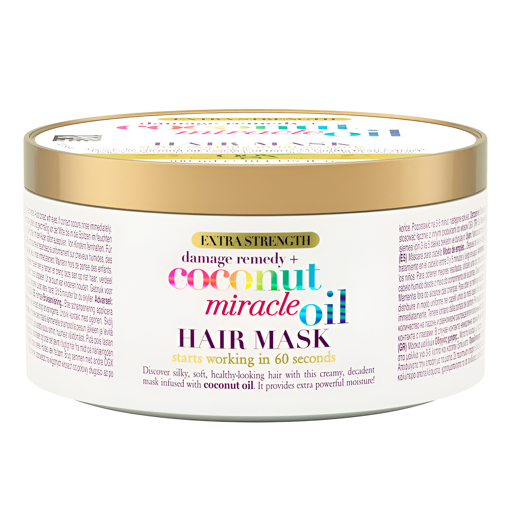 Maska do włosów OGX Coconut Miracle Oil to intensywnie nawilżający i regenerujący produkt, przeznaczony do włosów suchych, zniszczonych i potrzebujących głębokiej odbudowy. Wzbogacona olejem kokosowym, znanym z silnych właściwości nawilżających i odżywczych, maska działa na poziomie włókna włosa, poprawiając jego kondycję od wewnątrz. Produkt zawiera również inne naturalne składniki, które wspomagają odbudowę struktury włosa, zapewniając jednocześnie ochronę przed dalszymi uszkodzeniami.