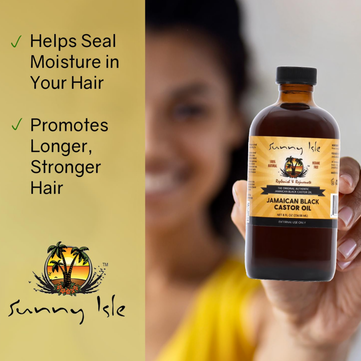 Sunny Isle Jamaican Black Castor Oil 59 ml to 100% naturalny, tłoczony na gorąco czarny olej rycynowy, pozyskiwany tradycyjną metodą z Jamajki. Bogaty w kwasy tłuszczowe i witaminę E, intensywnie odżywia, wzmacnia i regeneruje włosy, brwi, rzęsy oraz skórę. Stymuluje wzrost włosów, ogranicza ich wypadanie i przywraca zdrowy wygląd osłabionym kosmykom.
