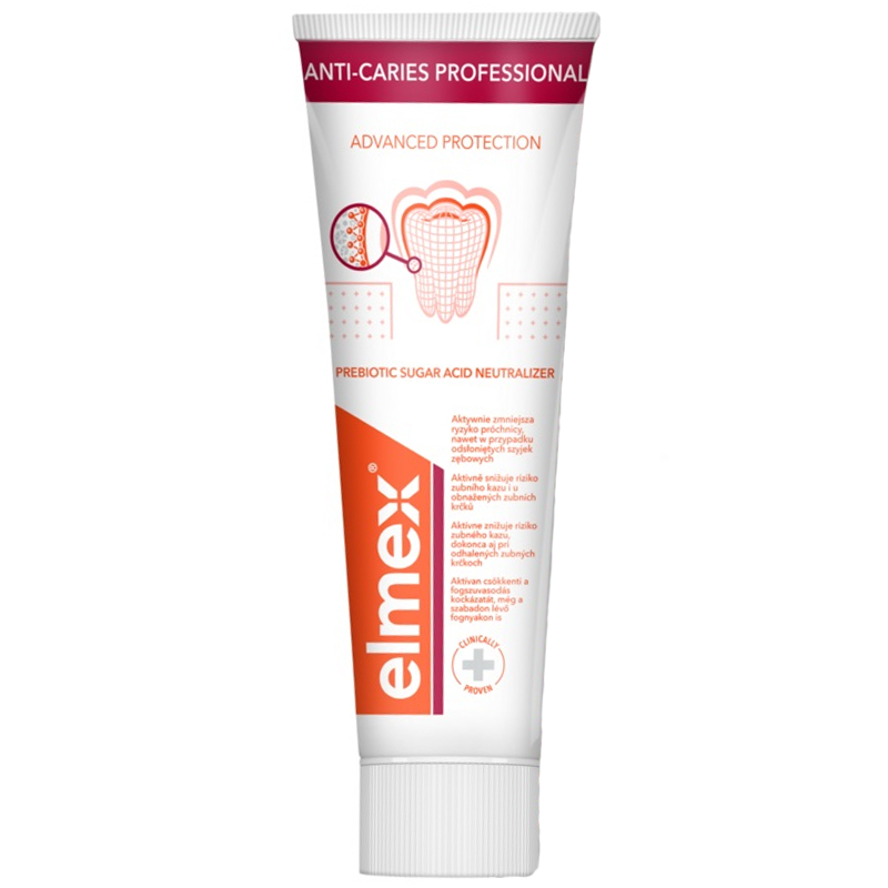 Pasta do zębów Elmex Anti-Caries Professional 75 ml jest specjalistycznym preparatem, który został stworzony, by zapewnić wyjątkową ochronę przed próchnicą i wspomóc zdrowie zębów. Dzięki innowacyjnej formule zawierającej Neutralizator Kwasów Cukrowych, pasta skutecznie zwalcza jedną z głównych przyczyn rozwoju próchnicy - kwasy cukrowe w płytce bakteryjnej.