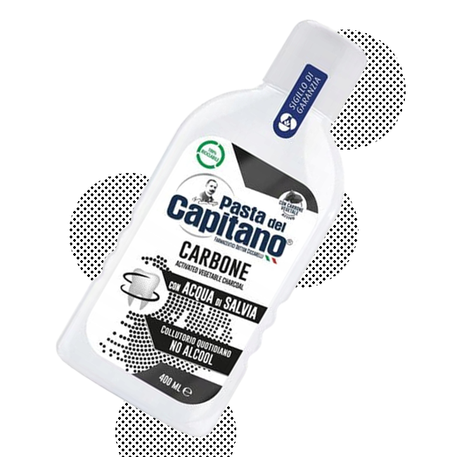 Skuteczna ochrona i naturalne wybielanie w jednym dzięki Pasta del Capitano Carbone – innowacyjnemu płynowi do płukania jamy ustnej z dodatkiem aktywnego węgla.